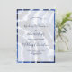 Ce design artistique moderne et unique présente un motif à l'aquarelle tie dye shibori bleu indigo marine foncé et blanc ressemblant à de l'agate, du marbre ou des vagues océaniques se déversant sur une plage. Au centre de l'avant, tous les détails du mariage sont inscrits dans un script de calligraphie élégant et tendance et une typographie sans empattement sur une superposition blanche partiellement transparente qui laisse apparaître le motif marbré. Vous pouvez personnaliser cet article en modifiant le texte personnalisable dans le modèle de produit.