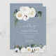 Cette belle faire-part de mariage présente des fleurs blanches et bleues, des eucalyptus et des cônes de pin, contre un arrière - plan bleu poussiéreux. Célébrez votre journée spéciale avec notre élégante suite de faire-part de mariage bleu et blanc poussiéreux. Notre design intemporel présente des teintes douces de bleu et de blanc, créant une atmosphère sereine et romantique pour votre célébration mariage. Les détails délicats et les fontes sophistiquées dégagent une sensation de beauté classique, parfaite pour un thème mariage traditionnel ou moderne. De la sauvegarde des dates aux cartes RSVP, notre suite d'invitation offre un look cohésif et élégant qui impressionne vos invités dès qu'ils les reçoivent. Laissez-nous vous aider à donner le ton à votre mariage de rêve avec notre magnifique collection d'invitations bleu et blanc poussiéreux. Customisez les détails pour répondre à vos besoins et n'oubliez pas de changer les initiales à l'arrière de la mariée et du marié !