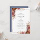 Dégustez vos invités avec cette élégante invitation de mariage avec un design floral d'aquarelle exquis mettant en valeur vos détails mariages. Concevez avec l'option de changer le texte au besoin, ainsi que l'introduction de "avec leurs parents" à "avec leurs familles", "avec une grande joie" ou "avec grand plaisir". Détails floraux dans un beau mélange de tonalités bordeaux, rousses, rose poussiéreuses, pêche, champagne et jaune. Cadre dans une fausse feuille d'or. De retour dans un ton bleu élégant. Ce même design est également disponible avec le dos en bordeaux, en rose roux et en blanc. Une partie d'une collection avec une variété de produits de coordination disponibles.