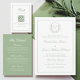 Invitation Elegant Monogram Crest Sage Green Wedding