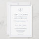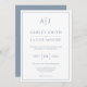 Une faire-part de mariage minimaliste moderne présente un design classique de police et une élégante palette de couleurs bleu et blanc poussiéreux et tendance. Personnalisez ce modèle de conception avec des initiales et des détails personnalisés.