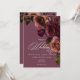 THIS IS AN ALL IN ONE INVITATION, WITH RECEPTION AND ADDITIONAL DETAILS ON THE BACK. Embrace timeless elegance for your gothic-inspired celebration with our captivating wedding invitation. A soft burgundy wine background provides the perfect canvas for a captivating, yet understated bouquet. Imagine a corner arrangement of muted rose blooms, where soft rust blush and rich burgundy hues mingle with dark green foliage. This ethereal design exudes quiet sophistication, perfect for the couple seeking a touch of romantic darkness. An elegant vintage script announces your event, while your wedding details are showcased in a modern font, ensuring they stand out beautifully. This enchanting design creates a truly unforgettable invitation for your special day, setting the tone for a moody and elegant celebration of love. Created by Simply Farmhouse Press.