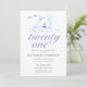 Un modèle élégant et moderne de 21e anniversaire pour les femmes avec un thème nautique, avec une empreinte d'encre des vagues de l'océan, un petit bateau et mouettes volant au-dessus, typographie classique avec une touche moderne, calligraphie moderne, ainsi que des bandes sur le dos. Un beau choix pour une fête de 21e anniversaire de plage, une fête de la côte, du lac, du bord de l'eau, du bateau ou du yacht pour une femme de 21ans.