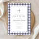 Invitation Elegant Navy Blue Gingham Boy Baptism