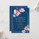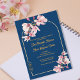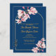 Elegant Navy Blue Magnolia Floral Wedding Invitation with Gold Arch .