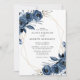 Invitation Elegant Navy Blue Silver Geometric Floral Wedding