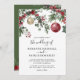 Des invitations de mariage rustiques d'hiver avec un arrière - plan blanc simple, des fleurs d'aquarelle festives et du feuillage, des baubles de couleur rouge et or xmas, et un modèle de mariage élégant qui est facile à personnaliser.
