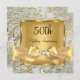 Invitation 50e anniversaire de mariage. Élégant nœud papillon diamant or et motif floral en spirale. Veuillez noter : Toutes les images sont plates ! Elles ne contiennent pas de véritables bijoux !