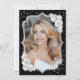 Elégante invitation à 50ème anniversaire fleurie avec votre photo au dos de la carte. Design noir et blanc glam avec fausse parties scintillant argent. Comprend des roses blanches, des caractères de script et des confettis. Parfait pour une fête anniversaire adulte élégante. Personnalisez avec vos propres détails. Peut être customisé pour n'importe quel âge ! Invitations Zazzle imprimées ou téléchargement instantané modèle imprimable numérique.