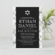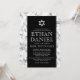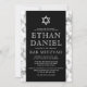 Élégante et moderne invitation mitzvah bar avec des bordures de texture de marbre blanc et votre texte d'invitation au centre sur un arrière - plan noir avec une étoile blanche de David au sommet. Pour plus de produits, demandes sur mesure, ventes, nouvelles et plus encore, suivez-nous sur Facebook : @chaistationery
