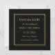 Avec l'élégance classique ce mariage enregistrer la carte de date transmet un sens du style. Un cadre carré double mince en or entoure votre texte. L'appariement des polices transmet vos informations avec goût. L'arrière - plan noir et la forme carré ajoutent une belle formalité au design. Personnalisez le modèle de texte avec vos détails.
