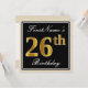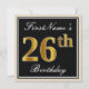 Invitation Elégant, Noir, Faux Or 26ème Anniversaire + Nom