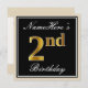 Invitation Elégant, Noir, Faux Or 2ème Anniversaire + Nom