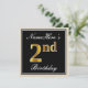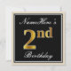 Cette conception simple et élégante d’invitation à la fête d’anniversaire comporte un message personnalisé comme "NameHere’s 2nd Birthday" (avec le "2nd" à l’allure fausse/imitation dorée) dans une zone de couleur noire carré avec un contour de bordure simple. Le nom est dans un élégant texte blanc de couleur script, et peut être customisé. Le dos contient des détails personnalisés sur l'invitation. Une invitation à une fête d'anniversaire comme celle-ci pourrait peut-être être utilisée pour inviter des gens à une fête d'anniversaire organisée pour quelqu'un qui célèbre son deuxième anniversaire. [~Z0000224]
