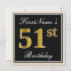 Invitation Elégant, Noir, Faux Or 51ème Anniversaire + Nom