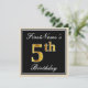 Invitation Elégant, Noir, Faux Or 5ème anniversaire + Nom