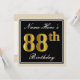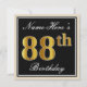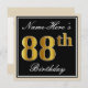 Invitation Elégant, Noir, Faux Or 88ème Anniversaire + Nom