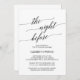 Ce noir élégant la nuit précédant la répétition dîner carte d'invitation est parfait pour un événement simple. Le design neutre présente une carte minimaliste décorée de typographie romantique et fantaisiste.