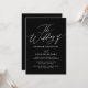 Invitations amis et famille à partager la joie de votre mariage avec cette invitation moderne, avec un script élégant et minimaliste noir et blanc. Économisez sur les coûts en ajoutant les détails de votre mariage à l'arrière.