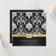 Belles invitations d'anniversaire de mariage de 50 ans en noir et or métallisé avec motif damassé vintage. Célébration du cinquantième anniversaire de mariage.