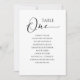 Design moderne et élégant imprimé noir blanc Calligraphie Script Tableau Numéro 1 Cartes de tableau de siège qui peuvent être customisées avec votre texte et ajouter chaque carte de numéro de tableau à votre panier, un par un. Cliquez sur le bouton "Customiser" et utilisez notre outil de conception pour modifier ce modèle. Découvrez le magasin Graphic Art Design pour d'autres produits qui correspondent à ce design !