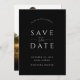 Annoncez votre journée spéciale avec ce Elégant nom personnalisé mariage noir enregistrer la date Invitation. Ces cartes reflètent le design de l'invitation de mariage, avec un arrière - plan noir, des lettres serif classiques et des noms personnalisés, donnant le ton de votre élégante célébration.