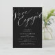 Simple minimaliste chic de calligraphie blanche et noir nous sommes engagés engagement script invitation partie de l'engagement.