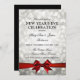 Invitation Elégant Nouvel An Soir Argent Bokeh Lights Red Bow