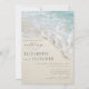 Idéal pour les mariages de destination, cette élégante invitation de mariage d'été à la plage avec un élégant script d'écriture manuscrite comporte une photo de gros plan d'un littoral de plage avec une vague d'océan et de la mer.