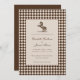 Elegant equestrian wedding invitation design that makes a classy and formal choice for any elevated wedding celebration or other luxury equestrian event. Featuring a horse illustration and fully customizable text to fit your event. Checkered background in brown and light beige.