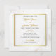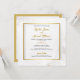 Elégant Faire-part de mariage or et blanc conçu avec un cadre de couleur or sur un arrière - plan blanc aux accents de confettis or. Le texte comprend : Le nom de la mariée et de la chambre, la date du Mariage, l'heure, l'emplacement et les détails de la réception. Le texte inverse comprend : RSVP et votre réponse Détails sur un arrière - plan blanc avec cadre doré. Pour personnaliser, insérez simplement vos détails dans notre modèle facile, en remplaçant l'échantillon. N'oubliez pas de consulter la collection Elegant Gold and White Mariage pour les cartes et accessoires correspondants.