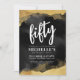 Invitation d'anniversaire Fun Girly aquarelle noir et or 50 ans. Vous pouvez la modifier pour n'importe quelle année d'anniversaire ! 30, 40, 60 ou même pour d'autres événements entièrement ! Célébrons ses cinquante ans avec cette invitation de fête d'anniversaire cinquantième élégante mais féminine noire et dorée. Caractérisé par un fond noir tendance et de faux or ou aquarelle ou encre alcoolique pour donner le fond à cette invitation, et une typographie calligraphique blanche mixte avec un mélange de polices serif modernes simples et classiques.