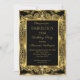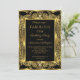 Invitation Élégant Or Photo Anniversaire Fête Noir Damassé
