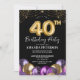 Invitation Elégant or violet ballons 40e fête d'anniversaire