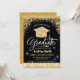 Elégante Parties scintillant d'or moderne Sparkly Graduation Invitation. Félicitations à la GRAD ! Félicitations pour leur succès bien mérité et célébrez-les avec cette carte d'invitation élégante. Tous les textes sont pré-arrangés pour que vous personnalisiez facilement et rapidement avec vos propres détails.