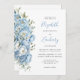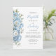 Le bord gauche de cette élégante invitation de mariage est orné d'un bouquet floral bleu pastel. Le texte personnalisable combine écriture manuscrite bleue avec cuivre gris fusain et polices italiques sur un arrière - plan blanc. Le design floral est répété à l'envers.