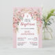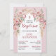 Elégante invitation au baptême religieux chrétien pastel rose floral aquarelle.