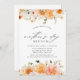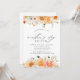 Élégante invitation pour brunch de la Mère avec des fleurs d'aquarelle bordant le dessus et le fond du design dans les tons de pêche, orange, rose roux, crème, et blanc avec une végétation subtile. "Fête des Mères" est affiché dans un script de calligraphie moderne avec les détails de votre événement ci-dessous. Le mot "brunch" peut être changé pour répondre à vos besoins pour les déjeuners de la Fête des Mères, les dîners, les fêtes de thé, etc.