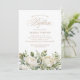 Elégant Peony Floral Script Baptism Invitation présente une belle illustration de pivoines blanches et de verdure.