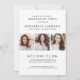 A simple and elegant graduation announcement designed with a clean black and white look, featuring photo collages on both the front and back for a timeless, polished feel. The front displays three photos in a neat collage layout, framed by a crisp white border with classic black text beneath. Change to “Class of 2026” (or any year), the graduate’s name, and school are shown in simple, modern fonts that keep the design understated and sophisticated.