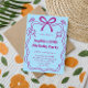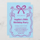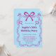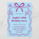 Celebrate in style with this charming birthday party invitation featuring a playful pink ribbon illustration, whimsical star doodles, and a soft pastel blue background. The elegant frame design adds a touch of sophistication, making it perfect for milestone birthdays, adult celebrations, and feminine party themes.