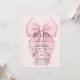 This invitation features a soft pearl pink color palette, symbolizing warmth, purity, and elegance. At its heart is a delicate bow, adding a touch of femininity and charm. Matching items available.
