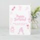 Invitation Elegant Pink Happy Birthday Sketch Card