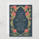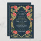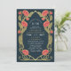 Capture timeless elegance with this Art Nouveau-inspired invitation! Featuring pink peonies, leaves against a blue background, this design sets the tone for a sophisticated celebration. Perfect for weddings, galas, and milestone events! Please note that the gold on this product is NOT real foil; it is printed flat.