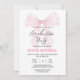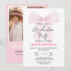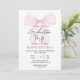 Celebrate this special milestone with this beautiful graduation party invitation card. Features a delicate pink watercolor bow in the upper portion, creating an elegant and feminine touch. The design includes "Graduation Party" in sophisticated script font, with the graduate's name "OLIVIA MITCHELL" in bold dark pink. Clean white background with organized layout displaying event details including date, time, venue, and academic information. Perfect for graduation celebration, prom night, or milestone event. Customizable text fields for personalization. Watercolor style, elegant, modern graduation design suitable for printing on various materials and products.