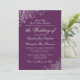 Ces belles invitations à un mariage sont accompagnées d'une formulation officielle traditionnelle où la cérémonie est organisée par les parents de la mariée. Le design intemporel classique présente des boucles et des tourbillons en faux feuille gris argenté ornés dans les coins avec des lettres de script fantaisie sur un arrière - plan de couleur prune ou aubergine profonde. Un moyen parfait d'invitation votre famille et vos amis pour partager votre joie dans votre journée spéciale.