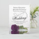 Cette belle faire-part de mariage présente une magnifique photo d'un seul rose à long tige de prune violette ou d'aubergine couché sur son côté, réfléchissant dans un bassin d'eau avec vagues et ondulations. Le design se compose d'un script de calligraphie sophistiqué avec une longue queue bouclée, ce qui le rend à la fois moderne et classique. Une façon élégante, sophistiquée et chic d'invitation vos amis et votre famille à partager dans votre journée spéciale. Le verso de la carte contient un code QR pour votre site mariage et une brève note demandant aux gens de visiter le site pour plus de détails et RSVP.