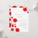 Invitation de fête de fiançailles de jardin floral de pavot aquarelle rouge élégant avec feuilles de verdure, tons de couleur sauge, typographie élégante et motif floral (dos).
