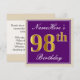 Invitation Elégant, pourpre, Faux Gold 98ème anniversaire + N