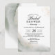 Invitez vos proches à célébrer la future mariée avec cette élégante invitation à la fête de mariage, qui présente un mélange sophistiqué d'aquarelle vert sauge doux et d'accents délicats de poussière d'or. La mise en page minimaliste associée à une typographie moderne la rend parfaite pour une célébration de mariage élégante et intemporelle. Personnalisez facilement le nom, la date, l'heure et le lieu pour la rendre unique. Idéal pour les fêtes de jardin, les thés après-midi chics ou les fêtes intérieures chic.